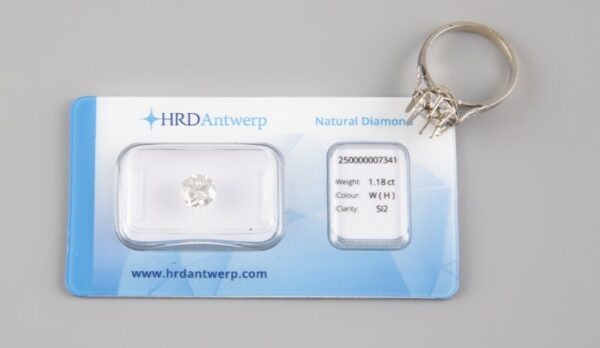 Estimation: 1650/1700 – Diamant taille brillant de 1,18ct couleur H, SI2, sans fluorescence, vendu sous scéllé du HRD Anvers, avec certificat en date du 17 janvier 2025