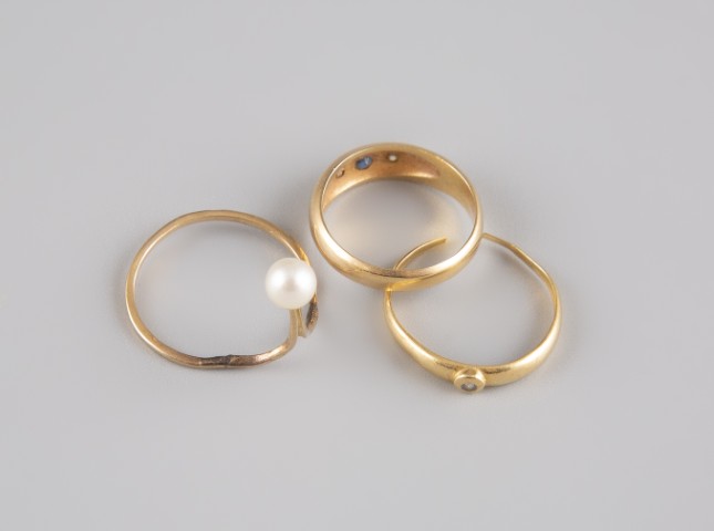 Estimation: 200/300 – Trois bagues en or jaune 18k 750°/°° serties de pierres et de perles