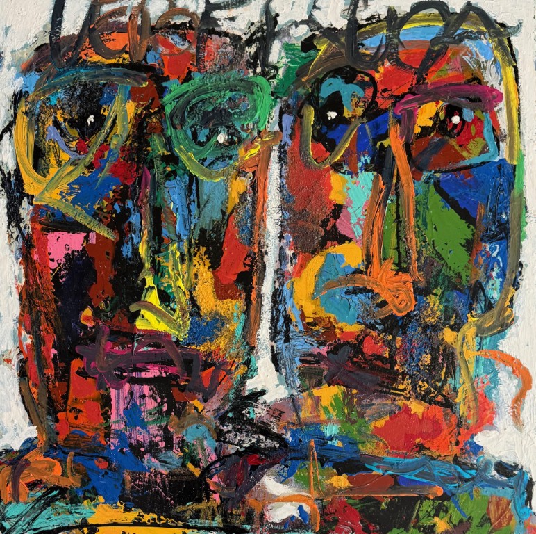 Estimation:1800/2000 Stéphane LEBERLOA (1972) « Couple d’amoureux ». Huile sur toile signée en haut. 80x80cm.