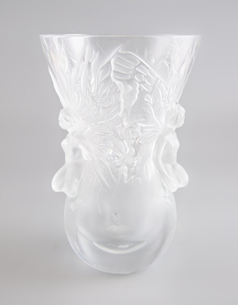 Estimation:400/500 LALIQUE France. Vase en verre moulé pressé blanc et satiné modèle « Fairy ». H. 29,5 cm