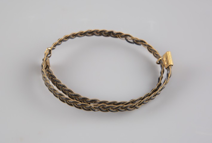 Estimation: 100/150 – Bracelet coulissant en or jaune 18K 750°/°° et poils d’éléphant