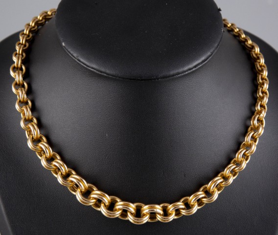 Estimation: 1200/1500 – Collier en or 18K 750°/°°, poinçon tête d’aigle, à maille forçat en chute