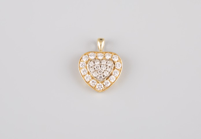 Estimation: 250/300 – Pendentif cœur en or jaune 18K 750°/°° serti d’un pavage taille brillant