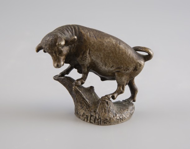 Estimation:30/40 STEM (XX°). « Taureau ». Epreuve en bronze à patine brune doré. Ht 7cm.