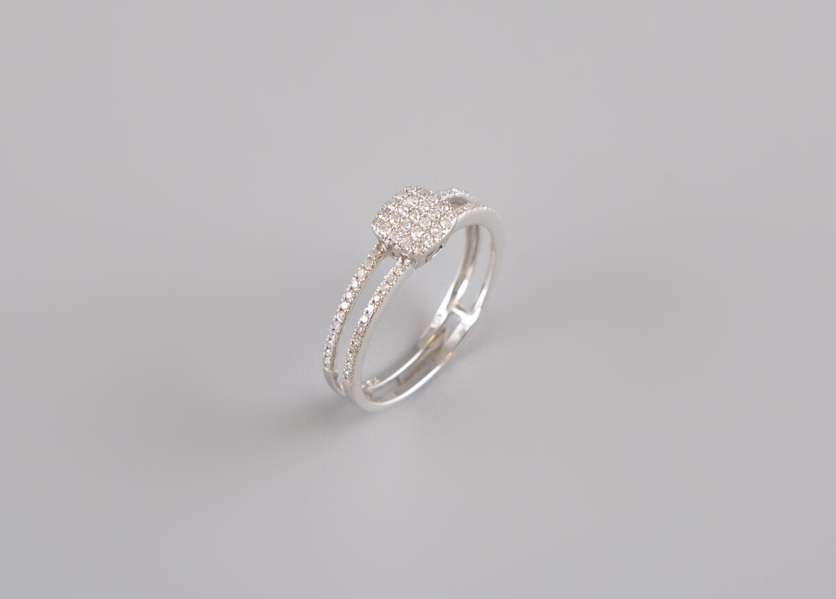Estimation: 60/100 – Bague en or blanc 9K 375°/°°, poinçon trèfle, pavage de diamants