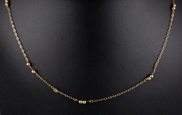 Estimation: 100/150 – Chaine en or jaune 18K 750°/°°, poinçon tete d’aigle et 750 à maille forcat alternée de boules