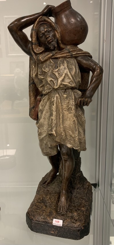 Estimation:300/400 Joseph LE GULUCHE (1849-1915). « Le porteur d’eau, Maure ». Sculpture en terre cuite patinée, signée sur la base. Ht 53cm.
