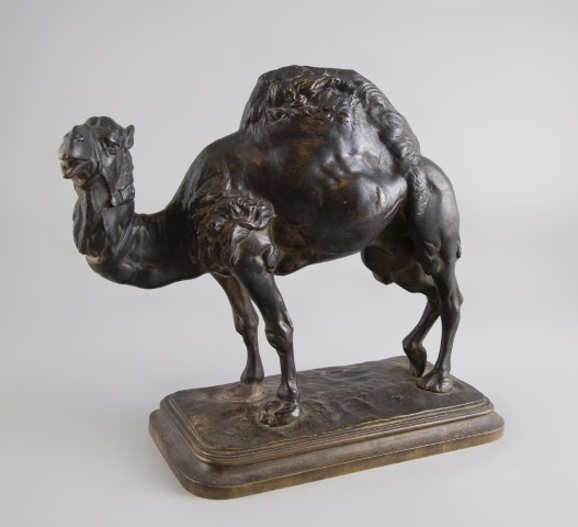 Estimation:300/400 Emmanuel FREMIET (1824-1910). « Dromadaire ». Epreuve en bronze à patine brune signée sur la terrasse. Signature effacée. Ht 28cm.