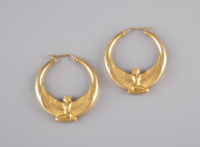Estimation: 250 / 450 – Créoles en or jaune 18K 750 °/°° d’inspiration égyptienne