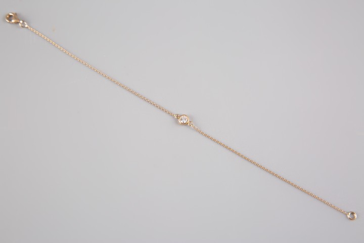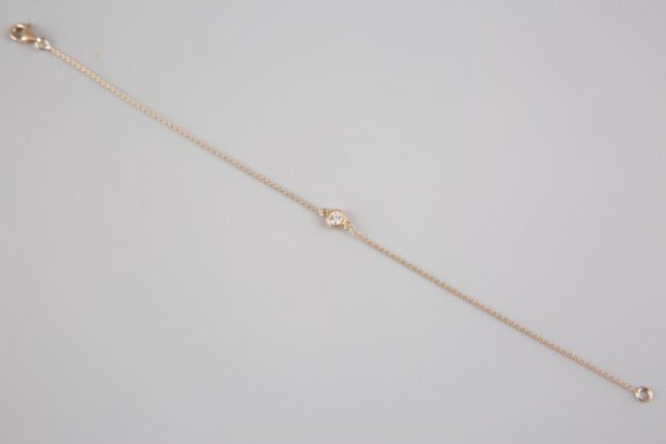 Estimation: 160/180 – Bracelet en or rose 18k 750°° maille forçat, serti d’un brillant en son centre, d’environ 0,20cts
