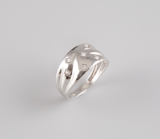 Estimation: 300/400 – Bague froissée en or blanc 18K 750°/°°, poinçon 750, constellée 7 petits diamants taille brillant