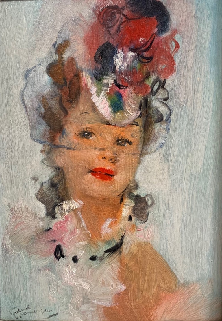 Estimation:2000/3000 Jean-Gabriel DOMERGUE (1889-1962) « Luce ». Huile sur carton épais signée en bas à gauche, titrée et annotée R65 au dos. 33x24cm.