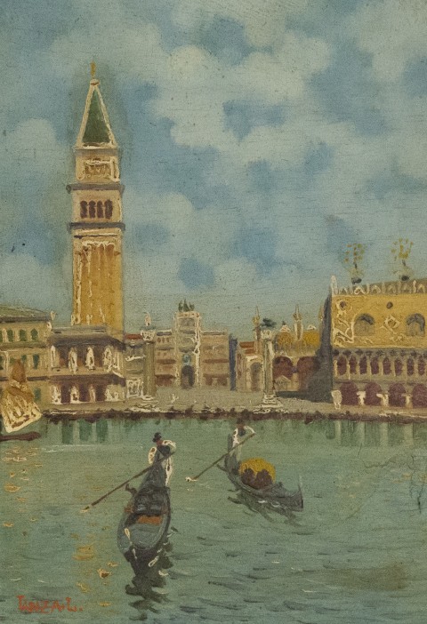 Estimation:180/200 Luigi LANZA (1860-1913) » La place saint Marc, Venise ». Huile sur panneau signée en bas à gauche, numérotée au dos 466A. 28x20cm.