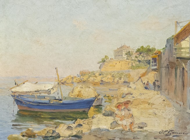 Estimation:300/500 Adolphe Louis GAUSSEN (1871-1954). « Pointu aux abords de la Corniche, Marseille ». Huile sur panneau signée en bas à droite. 24×32,5cm. Expert : Cabinet Chanoit, Paris.