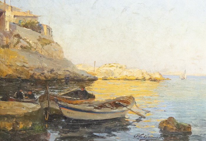 Estimation:200/300 Adolphe Louis GAUSSEN (1871-1954). « Pêcheurs sur la côte». Huile sur panneau, signée en bas à droite. 23x32cm. Expert : Cabinet Chanoit, Paris.