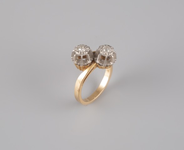 Estimation: 500/600 – Bague toi et moi en or jaune 18k 750°/°°, poinçon tête d’aigle, sertie de diamant taille brillant