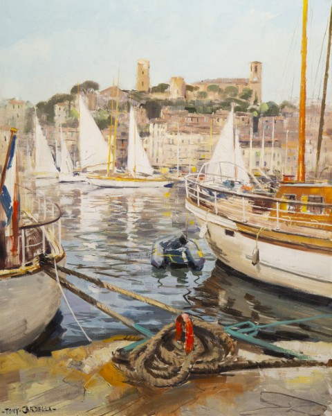 Estimation: 900/1000 – Tony CARDELLA (1898-1976) « Vue du Suquet, du Vieux Port de Cannes »
