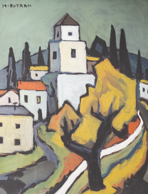 Estimation:120/150 Henri AUTRAN (1925-2007). « Aurel, Vaucluse ». Huile sur toile signée en haut à gauche, titrée et datée au dos, Mars 1977. 61x46cm.