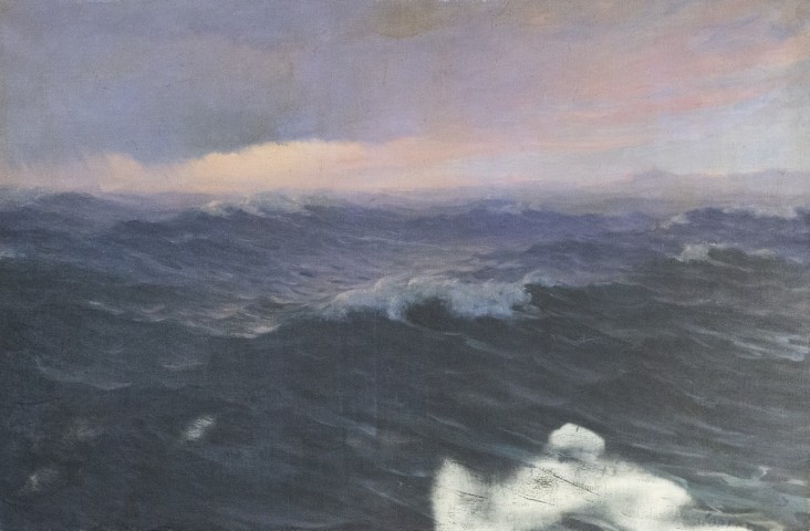Estimation:120/150 Paul JOBERT (1863-1942) « La vague ». Huile sur toile, signée en bas à droite. (53x80cm).