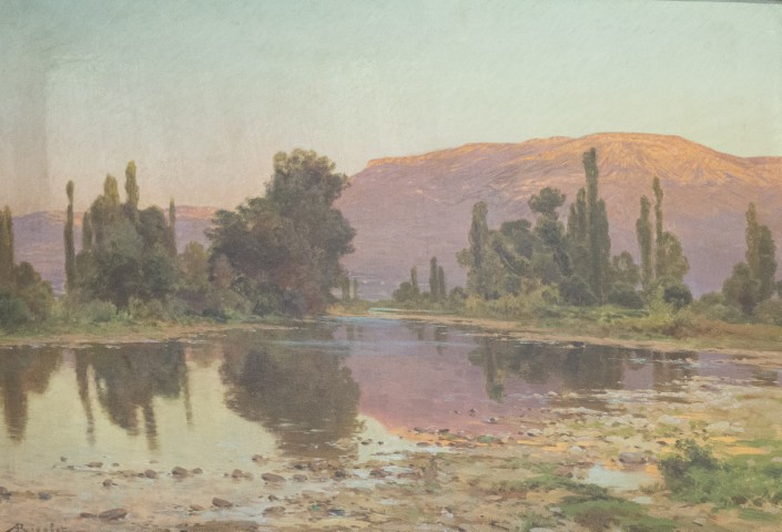 Estimation:600/800 Albert Gabriel RIGOLOT (1862-1932) « Paysage au lac ». Huile sur toile, signée en bas à gauche. (55x72cm.)