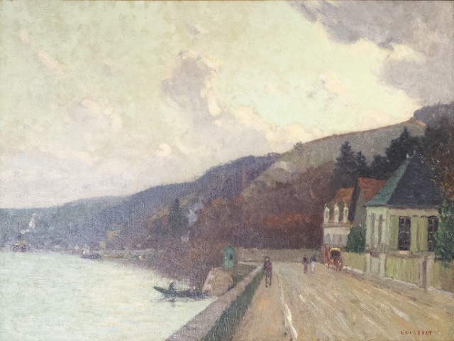 Estimation: 2000/3000 – Narcisse GUILBERT (1878-1942) « La maison de Flaubert à Croiset », Huile sur toile, signée en bas à droite (46X61cm)