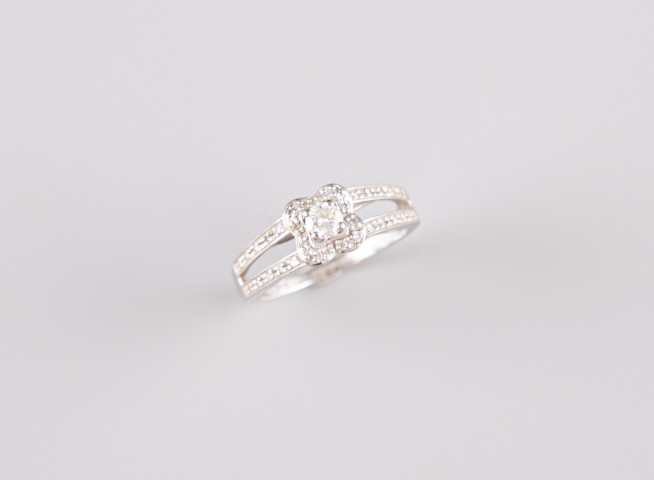 Estimation:400/600 MAUBOUSSIN. Bague en or blanc 18k 750°/°°, modèle Chance of love, sertie de diamants 0,2ct. Tour de doigt 52.Poids 2,7g.