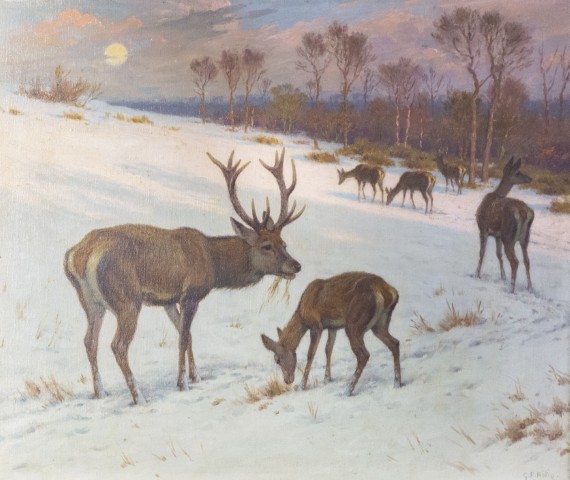 Estimation: 1500/2000 – Georges FREDERIC ROTIG (1873 – 1931) « Cerfs et biches »