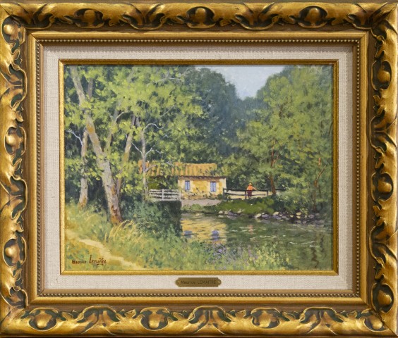 Estimation:150/200 Maurice LEMAITRE (1929-2018) « Le moulin Charlot à Marcenais, Gironde ». Huile sur toile signée en bas à gauche, titrée au dos. 27x35cm.