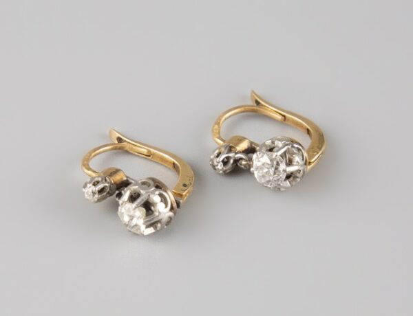 Estimation: 200/300 – Dormeuse en or jaune 18k 750°/°°, poinçon tête d’aigle, sertie de diamants taille brillant