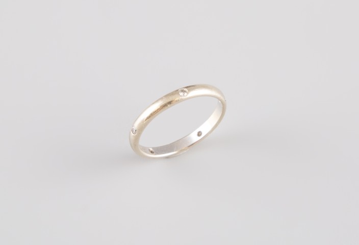 Estimation: 100/120 – Alliance en or blanc 18k 750°/°° alternée de cinq brillants sertis clos