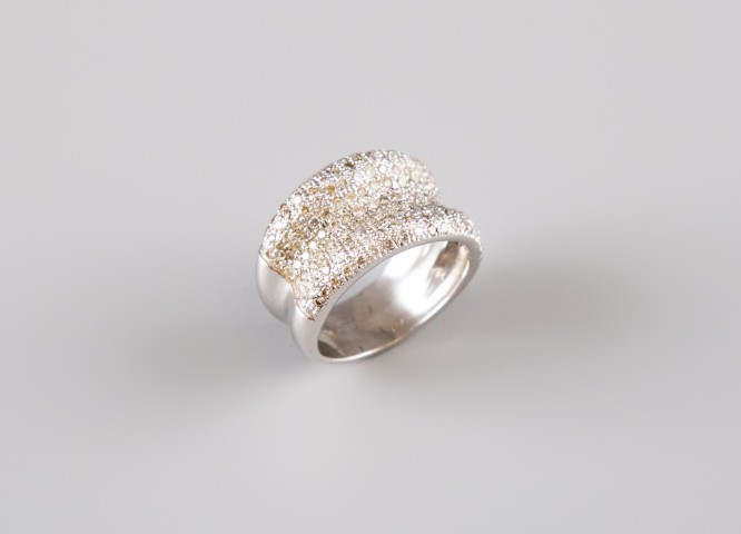 Estimation: 650/700 – Bague jonc en or blanc 18K 750°/°°, poinçon hibou, sertie d’un pavage de diamants taille brillant