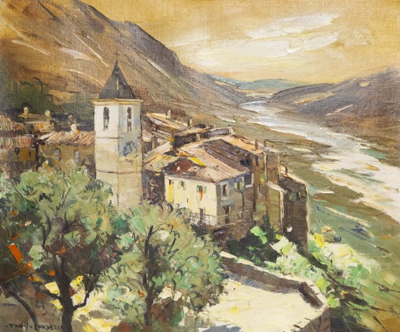 Estimation: 100/150 – Tony CARDELLA (1898-1976) « Village au clocher, Corse »