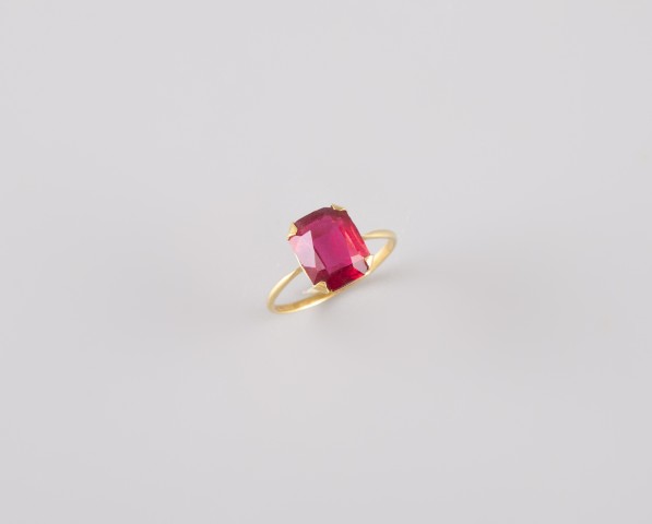 Estimation: 60/80 – Bague en or jaune 18k 750°/°°, poinçon tête d’aigle, sertie d’un grenat