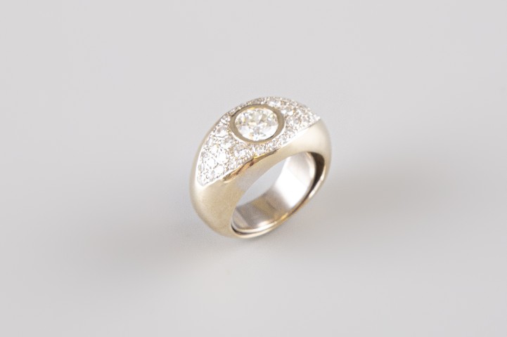 Estimation: 3000/4000 – Bague en or blanc 18k 750°° sertie d’un diamant d’environ 2cts épaulé de diamants taille brillants