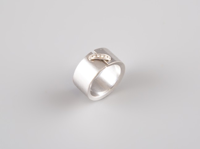 Estimation:1150/1200 CHAUMET. Bague jonc en or blanc 18K 750°/°°, poinçon 750, modèle Lien, ligne diamantée sur le haut. Largeur 1cm. Tour de doigt 52. Poids brut 11,71g.