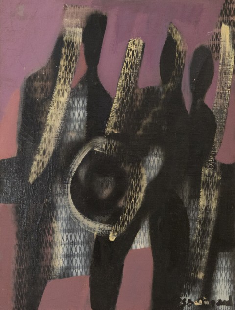 Estimation:120/150 Solange BERTRAND (1913-2011). « Personnage sur fond mauve ». Huile sur toile signée en bas à droite. 61×46,5cm.