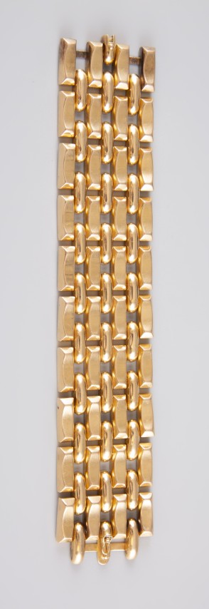 Estimation: 9000/10000 – Large bracelet en or jaune 18k 750°/°°, à 7 rangs de mailles rectangles et ovales