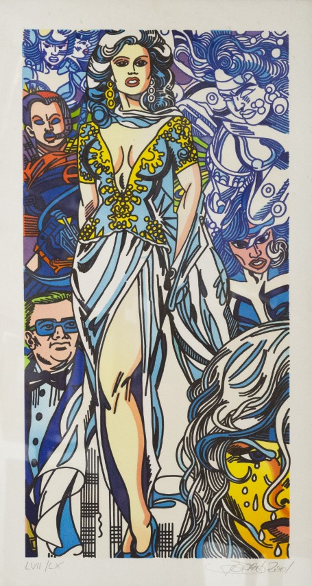 Estimation:300/400 ERRO (1932) « Le mariage, 2001 ». Lithographie signée et numérotée LVII /LX au crayon par l’artiste. 80x40cm.