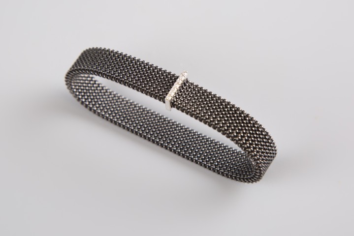 Estimation:80/100 MAUBOUSSIN. Bracelet en or 14K 585°/°° et acier rhodié noir serti de diamants. Poids 14,3g.