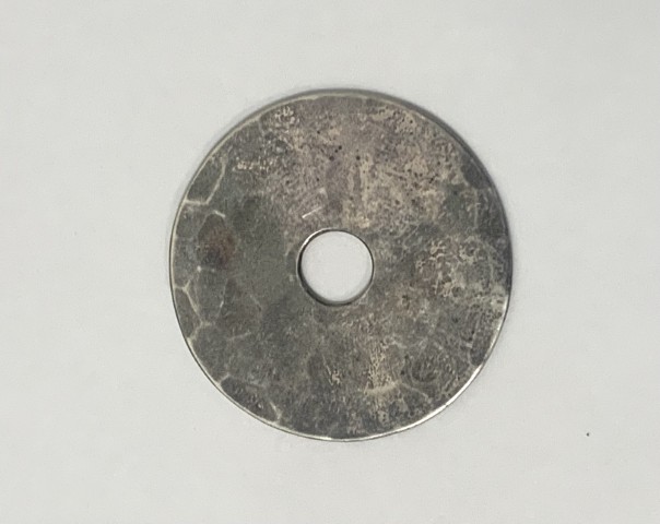 Estimation:250/300 DIN VANH. Pendentif disque en argent martelé 925°/°°, poinçon 925. Diamètre 35mm. Poids 8g.