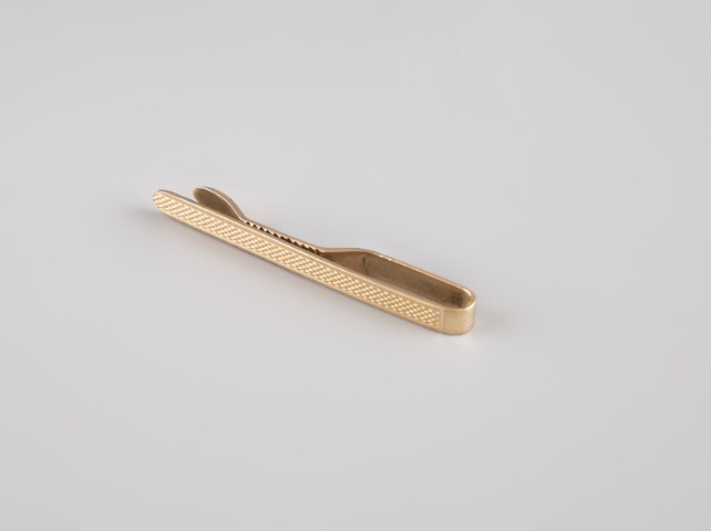 Estimation: 400/500 – Pince à cravate en or jaune 18K 750°/°°, poinçon hibou, à décor guilloché