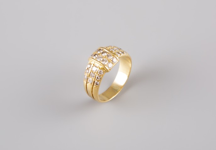 Estimation: 400 / 600 – Bague or jaune 18K 750°/°°, sertie de brillants (env