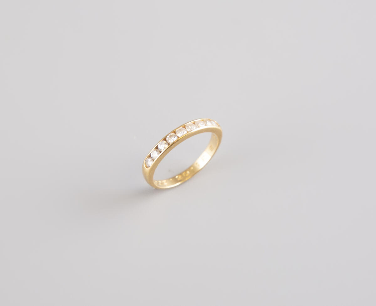 Estimation: 100/200 – Bague demi alliance en or jaune18K 750°/°°, poinçon tête d’aigle, sertie de diamants pour un total d’environ 0,30ct