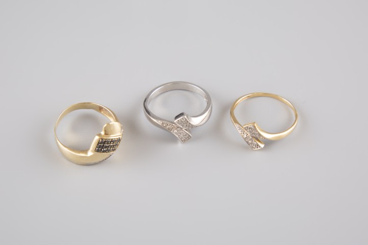 Estimation:300 / 500 Réunion de: – Une bague en or jaune 18K 750°/°° Tour de doigt 58. Poids brut 1,60 g.