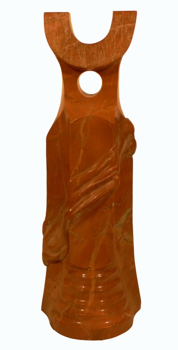 Estimation:300/400 Georges BOISGONTIER (1931-2019). « Santa Maxima ». Sculpture en marbre brun. Pièce unique. Ht 41cm.