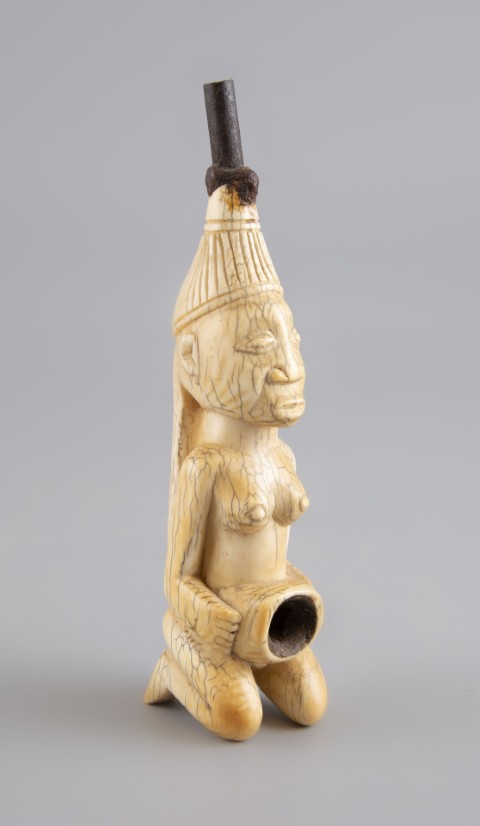 Estimation:50/100 NIGERIA. Pipe de dignitaire sculptée. Ht. 17,5cm.